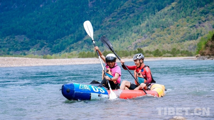比赛依托易贡乡独特的高原生态资源和高海拔训练基地优势,设置山地骑行、双人皮划艇、高原越野跑三大项目,全程28.5公里的赛道串联易贡湖、原始森林、油菜花田,让选手在竞技中饱览雪域春日盛景。赛事采用“两人一组、不限性别”的自由组队模式,吸引全国58支队伍、116名运动员参赛,涵盖专业选手与户外爱好者,充分体现全民参与理念。赛场旁,当地群众热情助威,民俗风情与赛事氛围相得益彰。